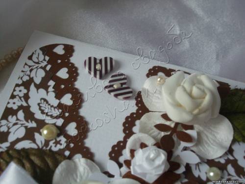 | Дизайнерская бумага, распечатанный фон, атласные ленты, искусственные лепестки, фигурные дыроколы, искусственные розы, бусины |