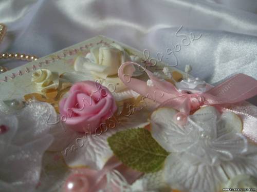 | Дизайнерская бумага, фон, бумажные цветы и лепестки, фигурный дырокол, половины чешских бусин, атласные и капроновые цветы, атласные ленты, калька, машинная строчка, кружево |
